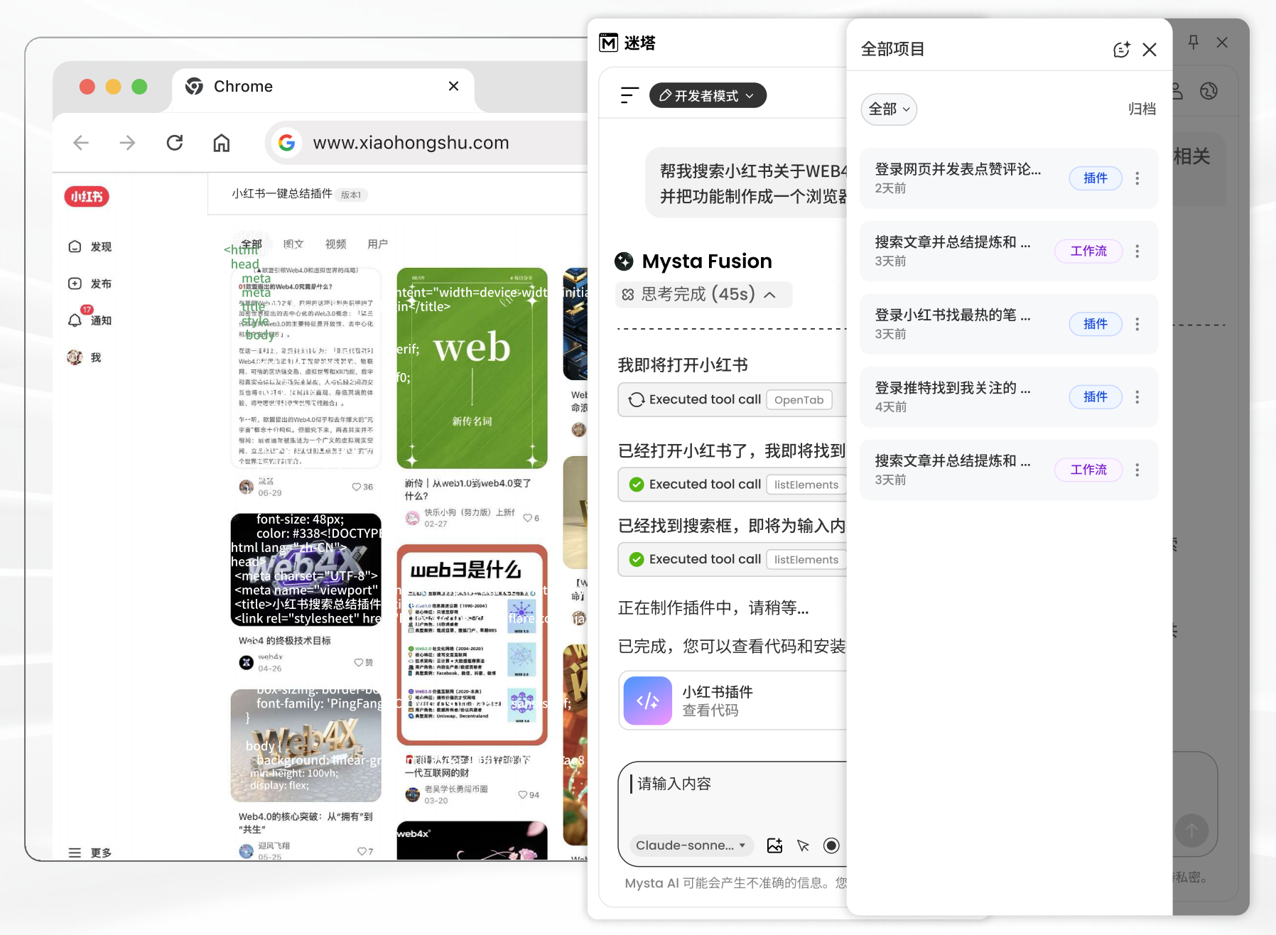 Mysta 插件结合通用 Browser Agent 和专用 Coding Agent,为你打造专属 AI Browser Lab,通过多智能体协同助你探索互联网、定制网页功能,实现流程自动化,所想即所见,释放无限潜能。